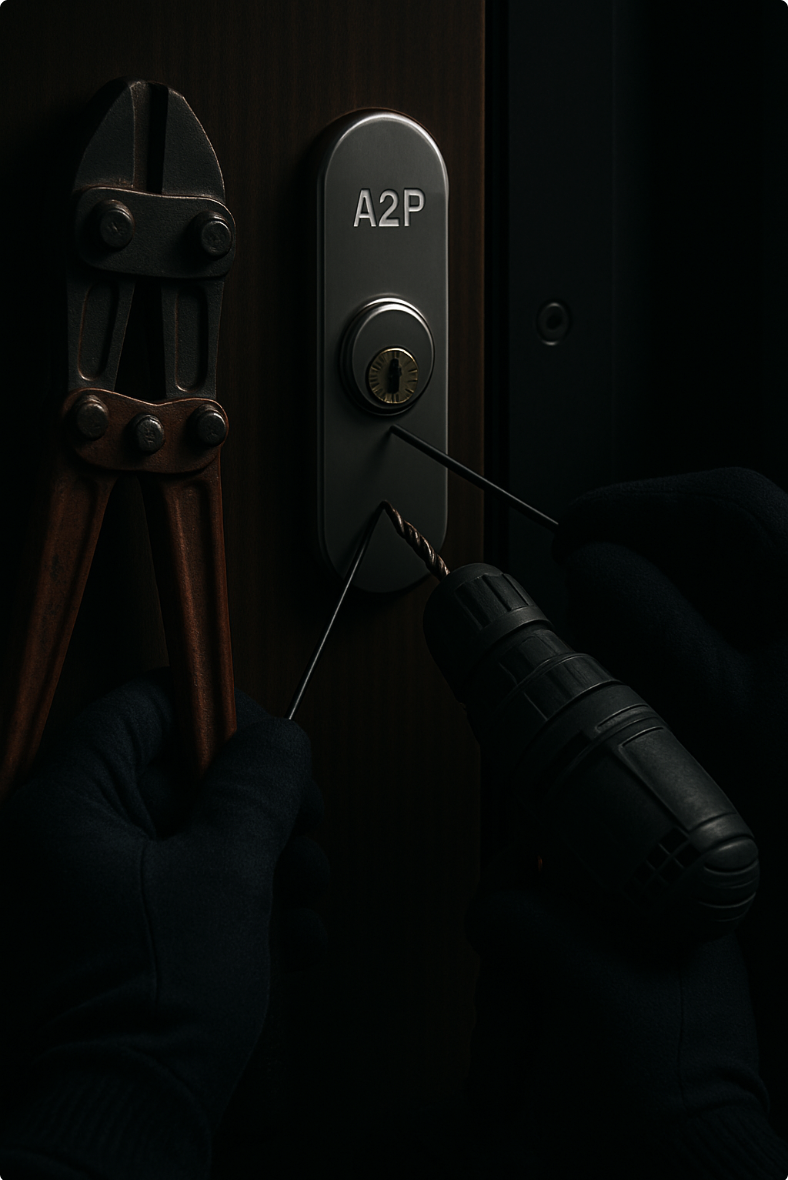 Les cambrioleurs expérimentés savent crocheter une serrure avec des outils fins. Ça prend quelques minutes sur une vieille serrure monopoint, et ça ne fait quasiment aucun bruit. C'est pour ça qu'on vous conseille toujours un cylindre haute sécurité anti-crochetage. Ces cylindres ont des goupilles spéciales qui rendent le crochetage quasi impossible.