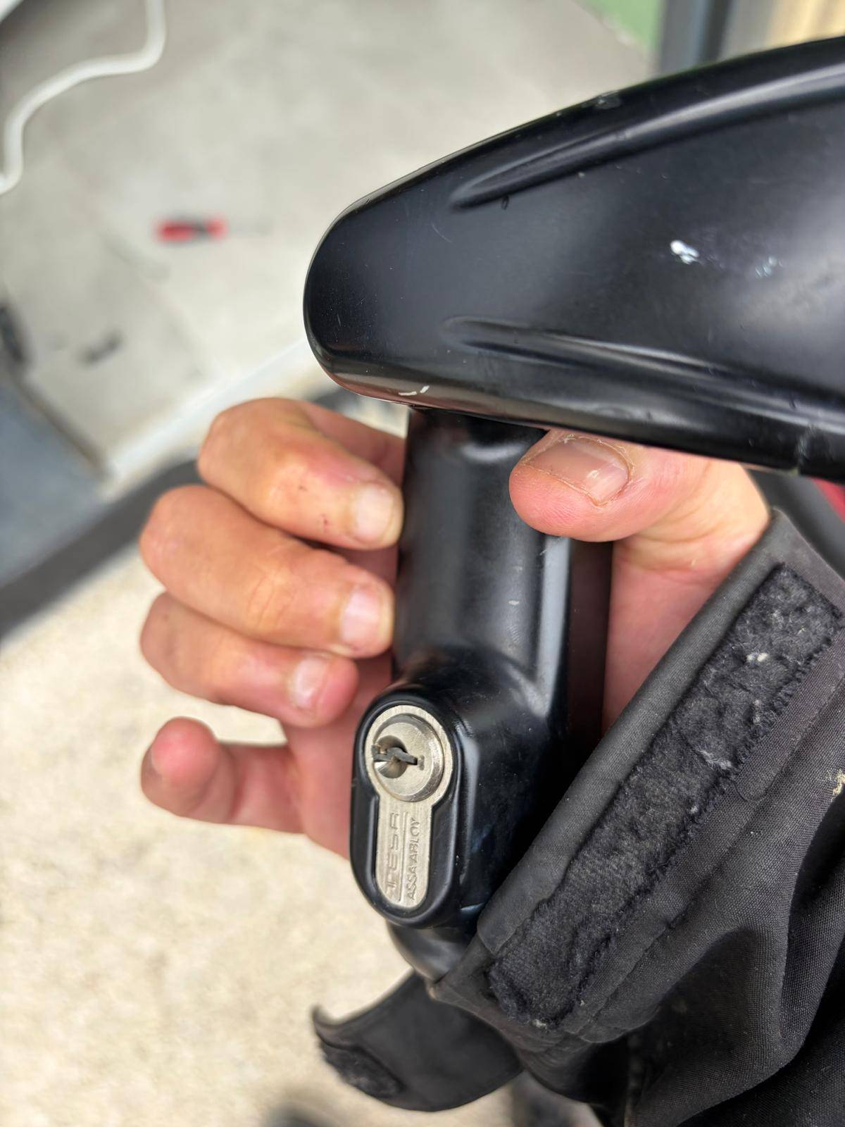 J'ai déposé ce qui restait de la serrure multipoints et posé un modèle neuf, compatible avec le châssis aluminium en place. Le barillet a aussi été remplacé, cylindre compris. Sur ce genre d'intervention, je ne pose rien sans avoir vérifié que la fermeture est vraiment solide une fois en place, c'est trop facile de bâcler ça vite fait.